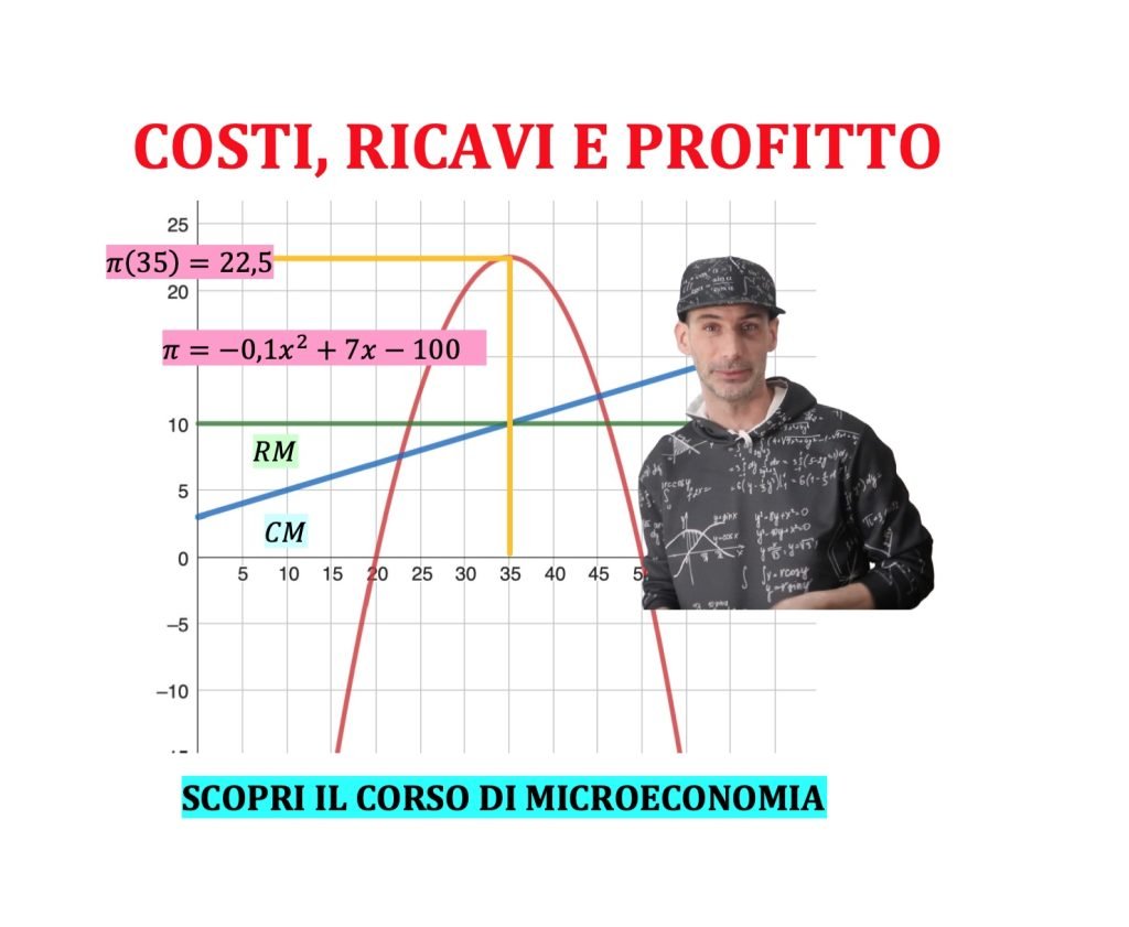 Determiniamo per prima cosa la funzione profitto, ricordando che altro non è che i ricavi meno i costi