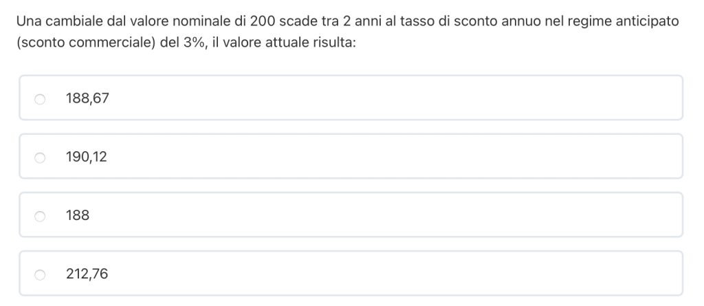 $$ M = 200 \quad t= 2\ \text{ anni} \quad d = 3\% $$