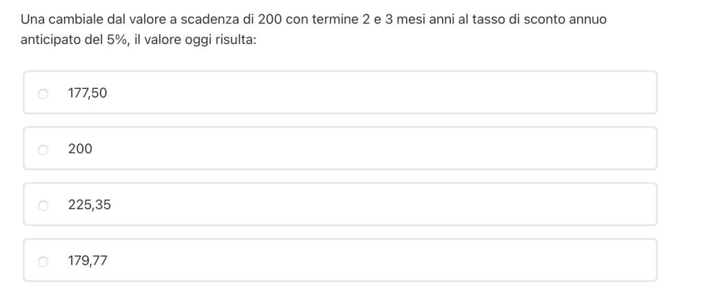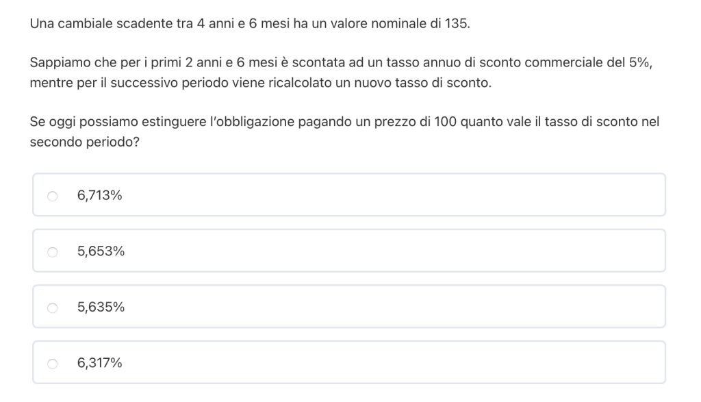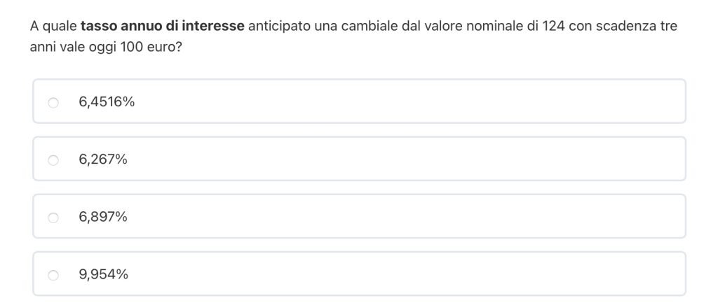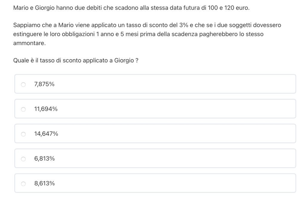 Stiamo attenti che il testo ci fornisce il tasso di interesse e non quello di sconto.