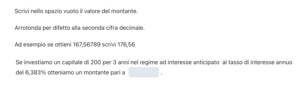 $$ C = 200 \quad t = 3\ \text{ anni} \quad i = 6,383\% $$