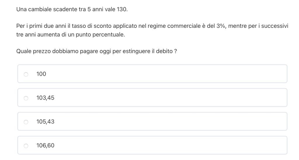 DOMANDA 1 – valore attuale – cambio tasso