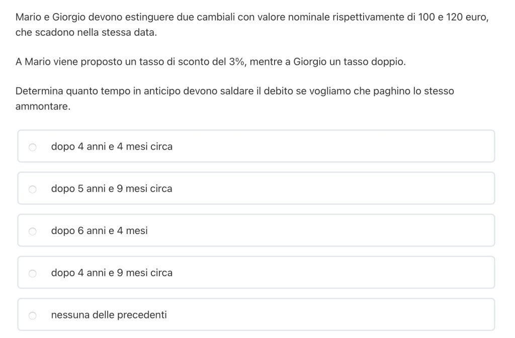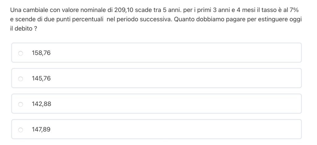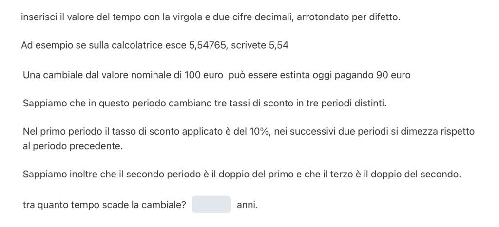 DOMANDA 1 – due cambiali – tempo di equivalenza