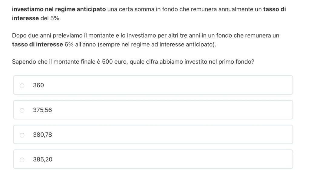 DOMANDA 3 – montante dato il tasso di interesse