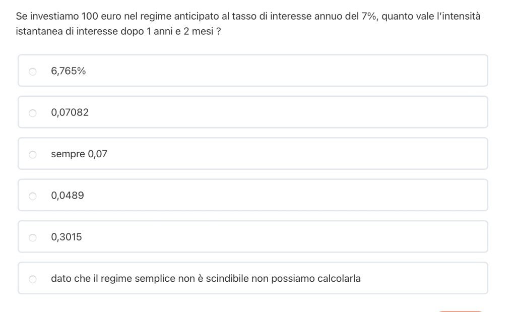 DOMANDA 2 – valore attuale tempo frazionario