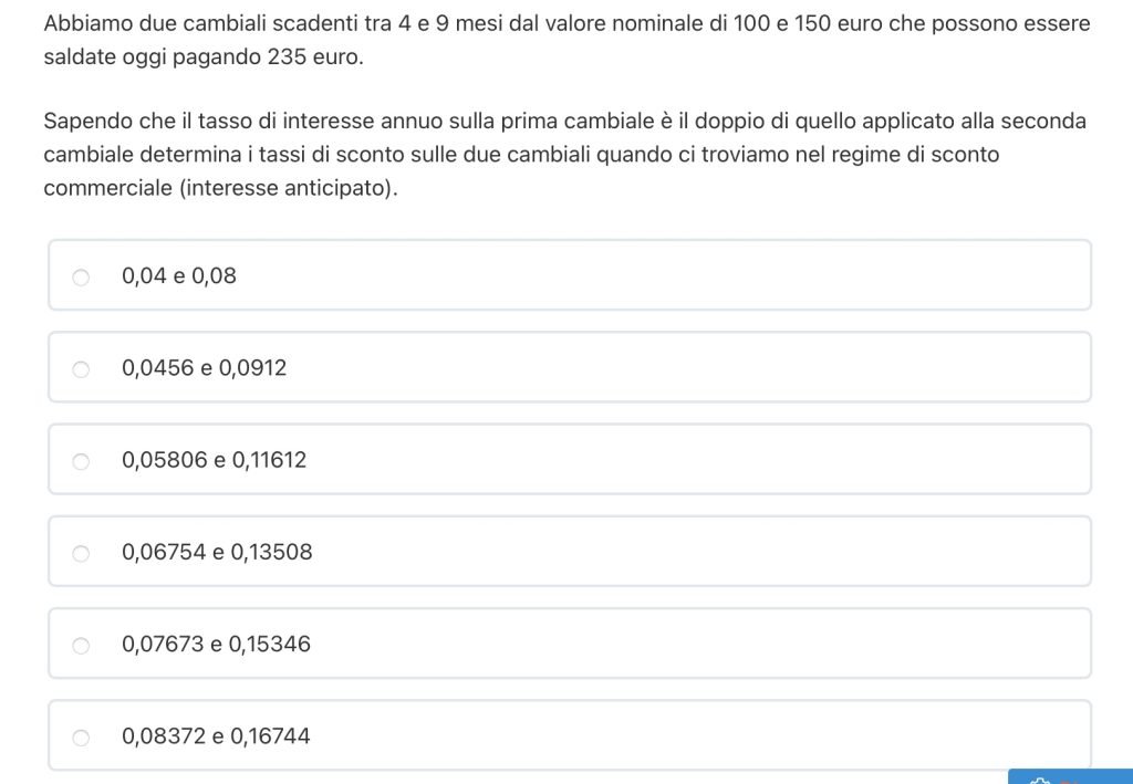 DOMANDA 2 – due cambiali – tasso di equivalenza