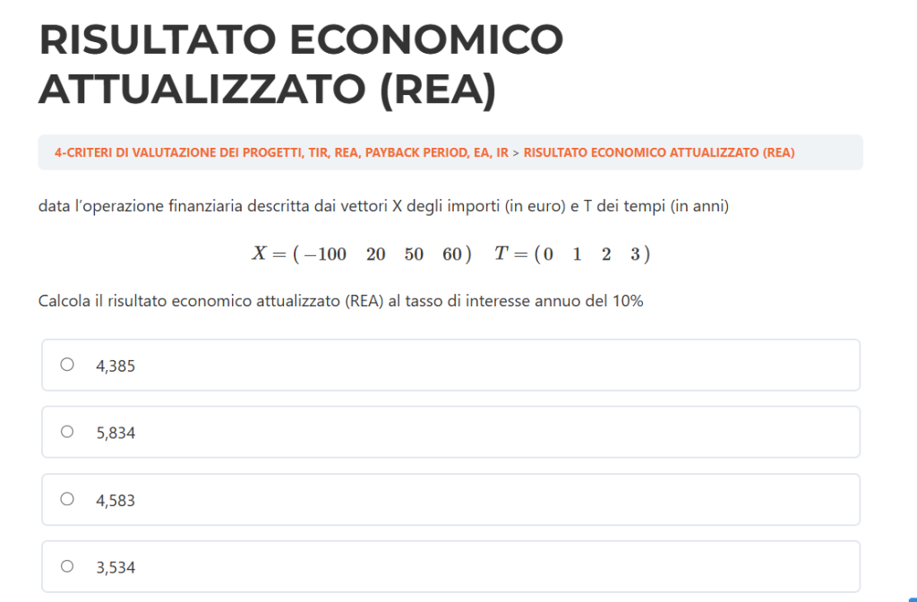 DOMANDA 4 – QUIZ RISULTATO ECONOMICO ATTUALIZZATO (REA)