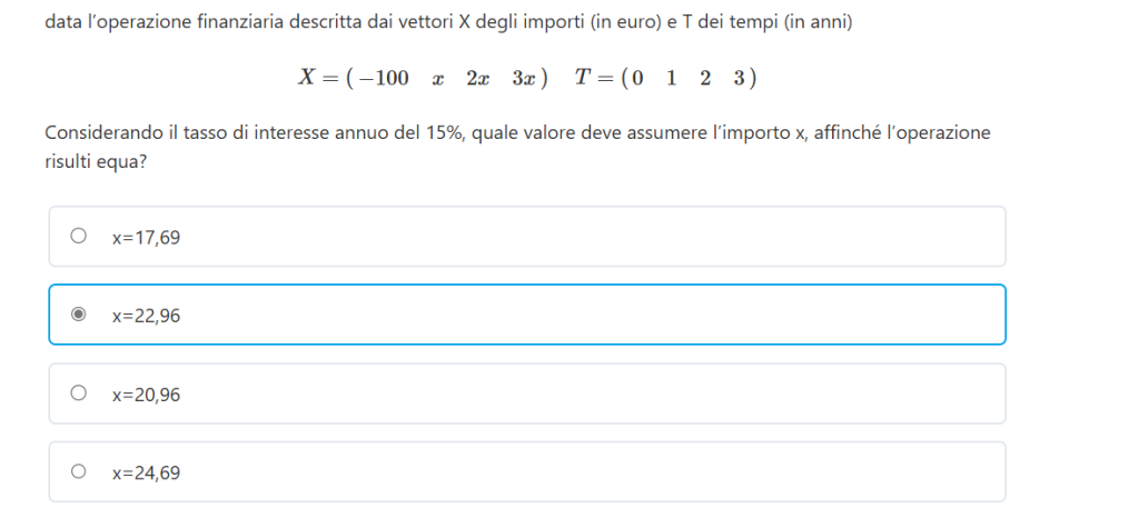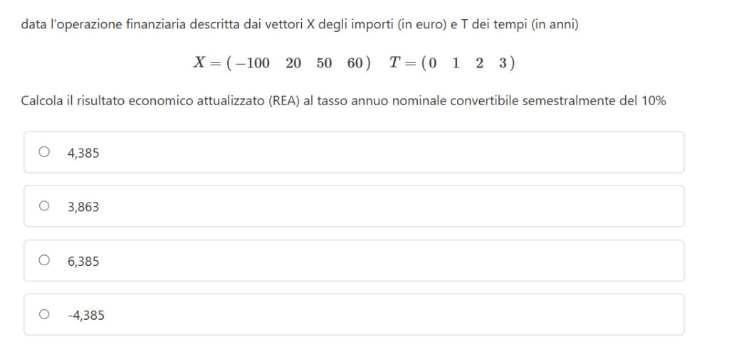 Se vogliamo che l’operazione finanziaria risulti equa deve avere il REA uguale a zero.