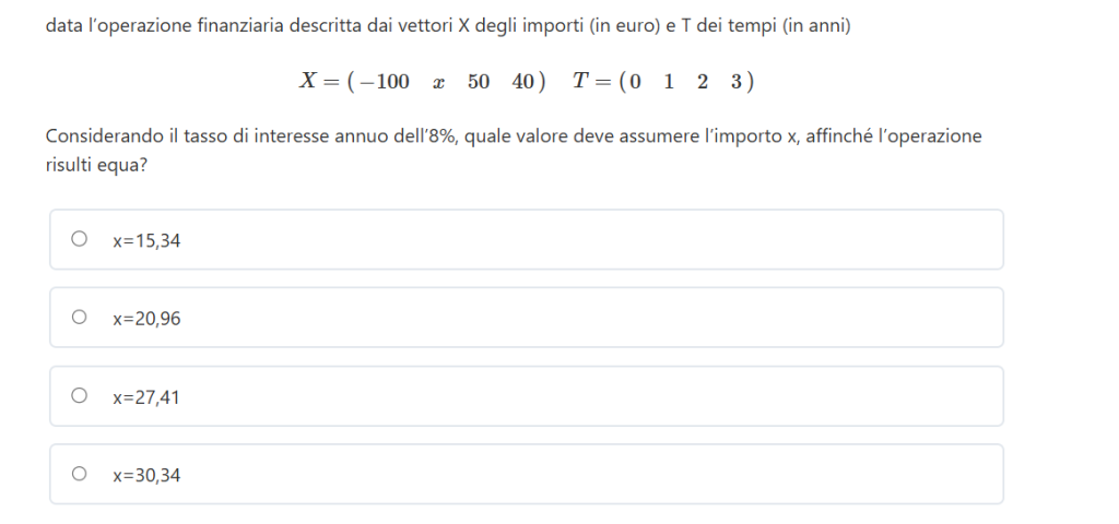 Un percorso che parte dai regimi finanziari, e passa attraverso rendite, piani di ammortamento, scelta di progetti e criteri di valutazione dei progetti, con tappa finale nella matematica attuariale