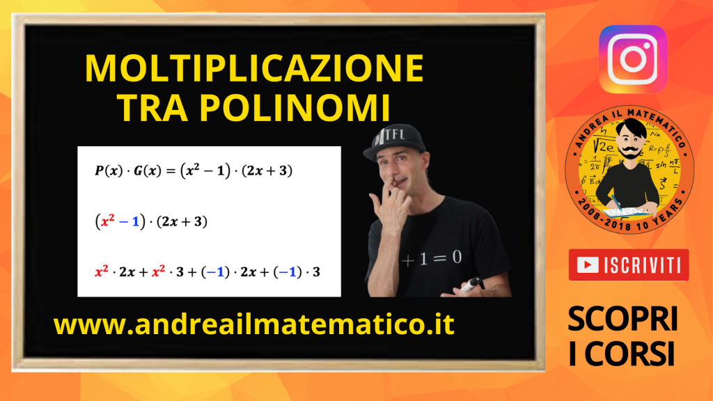 Per fare la moltiplicazione tra polinomi andiamo a moltiplicare ogni termine del primo polinomio per ogni termine del secondo polinomio