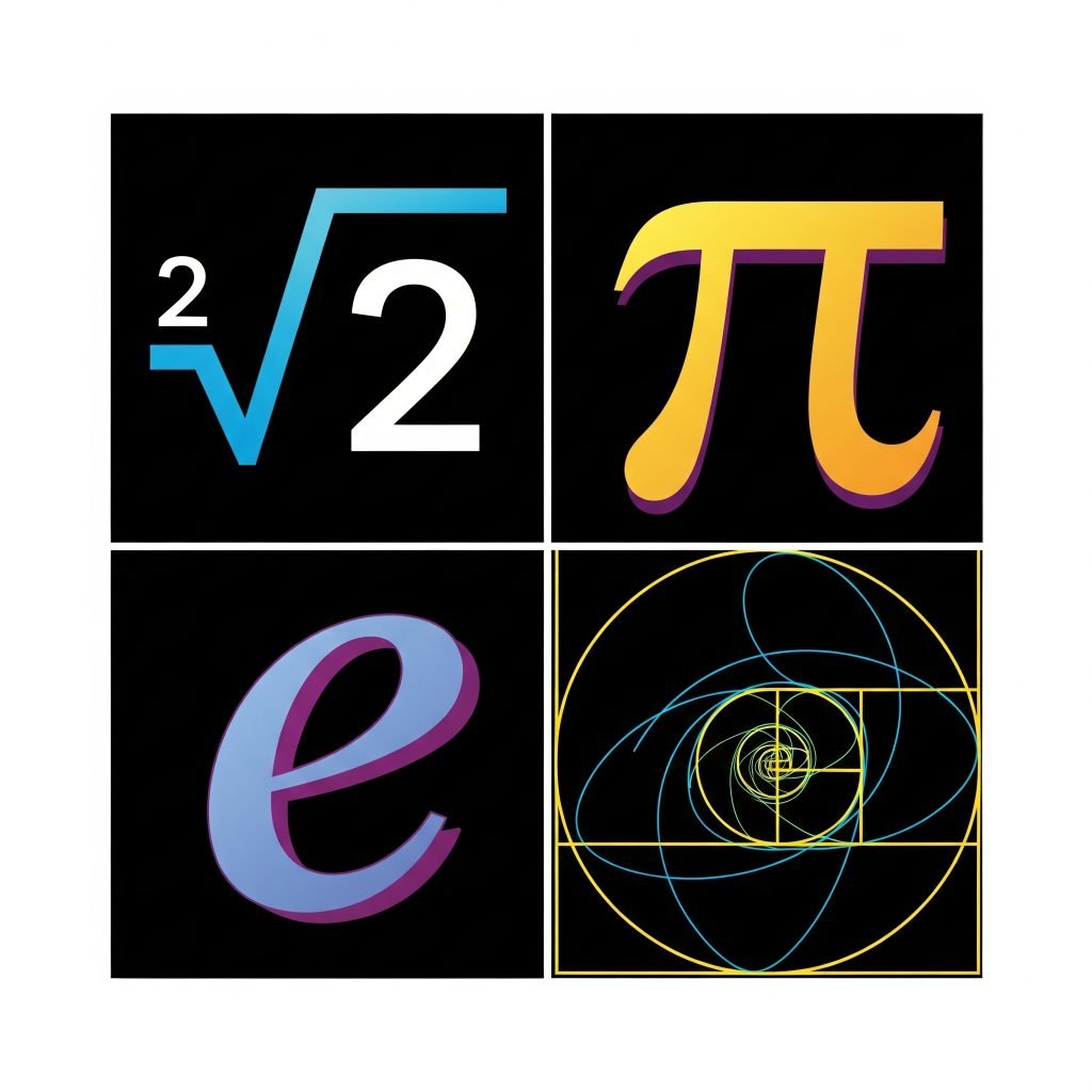 Il mondo matematico è costellato di esempi celebri di numeri irrazionali, ciascuno con una propria storia e significato. Un esempio classico è $\sqrt{2}$ (radice quadrata di 2), che rappresenta la lunghezza della diagonale di un quadrato di lato 1 e fu probabilmente il primo numero a essere riconosciuto come irrazionale dagli antichi Greci.