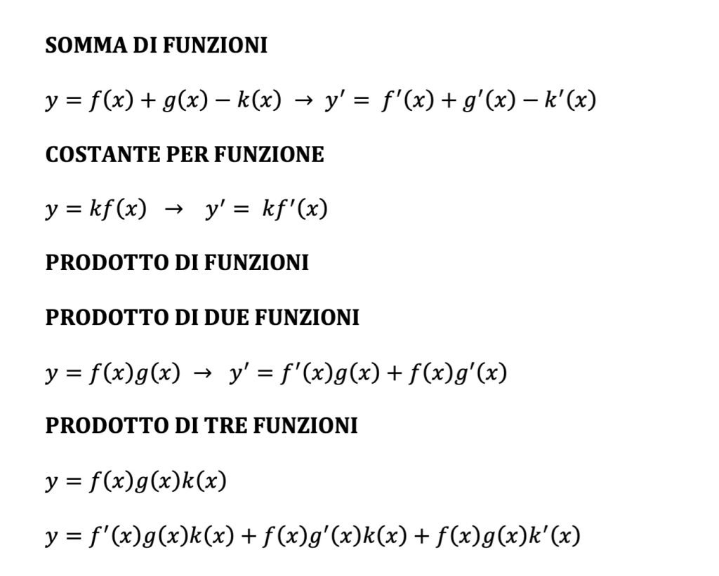 Grazie alle procedure di derivazione basate sul limite del rapporto incrementale si è potuto estrapolare delle regole generali che valgono anche per le funzioni composte.