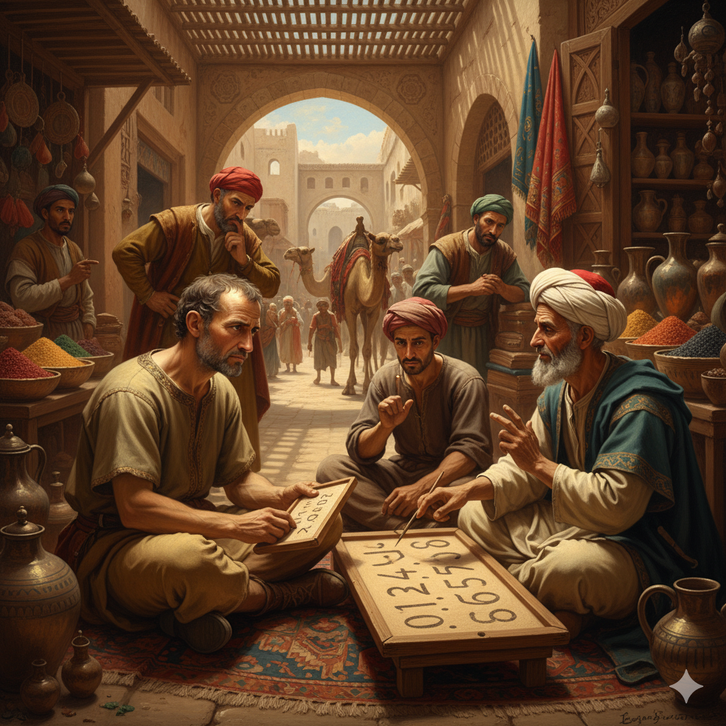Durante i suoi viaggi nel Mediterraneo, in particolare in Nord Africa (dove suo padre era un funzionario commerciale), Fibonacci imparò la notazione decimale posizionale dai mercanti arabi. Questo sistema, che utilizzava le cifre da 0 a 9 e il concetto cruciale dello zero come segnaposto, era infinitamente più efficiente.