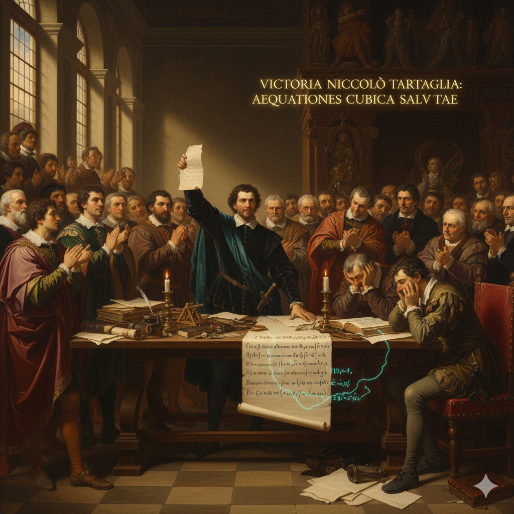Il culmine della sua carriera fu la vittoria, nel 1535, in una celebre gara matematica contro Antonio Maria del Fiore. La vittoria fu cruciale perché Tartaglia aveva scoperto la formula generale per risolvere le equazioni di terzo grado (equazioni cubiche), un risultato che mantenne segreto.